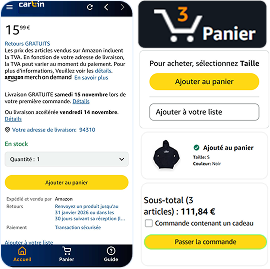 Visitez simplement amazon.fr pour parcourir les articles. Vous n’avez pas besoin d’un compte Amazon pour commander sur Cart’In